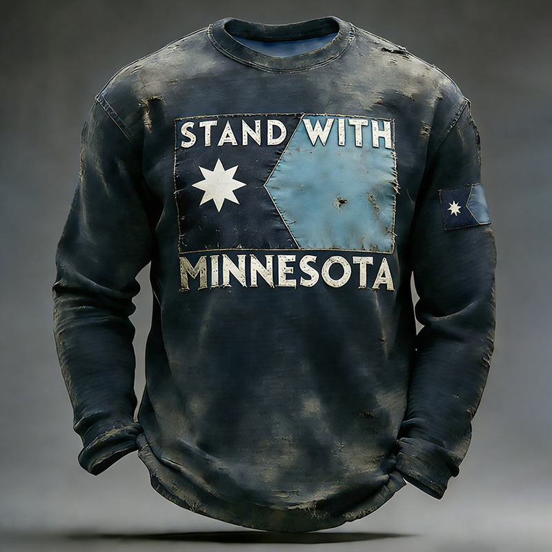 Men's "support Minnesota" Distressed Cotton Sweatshirt